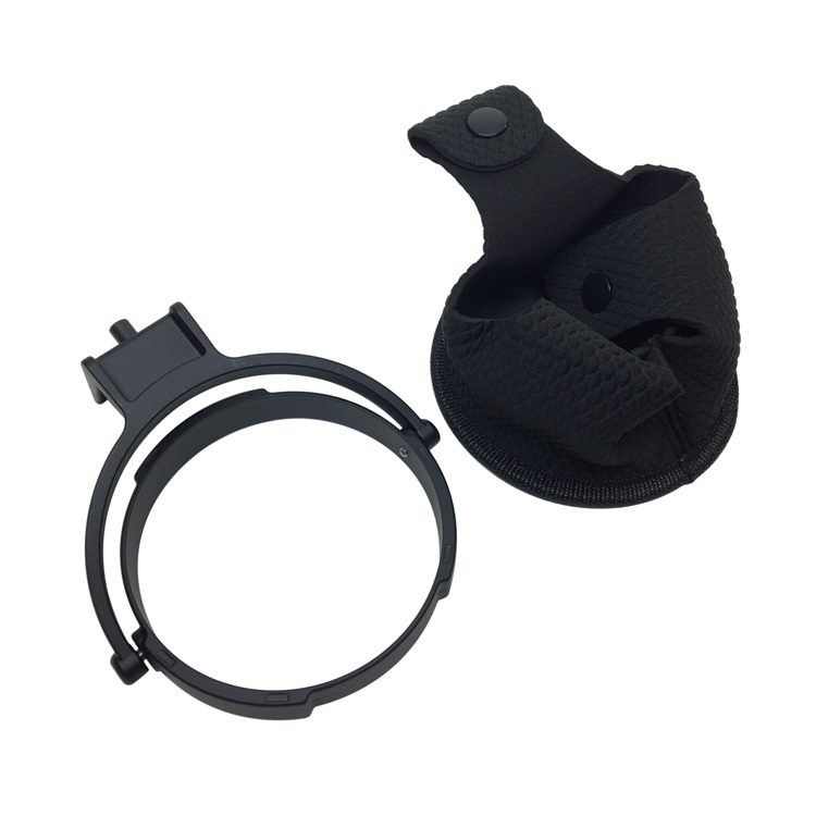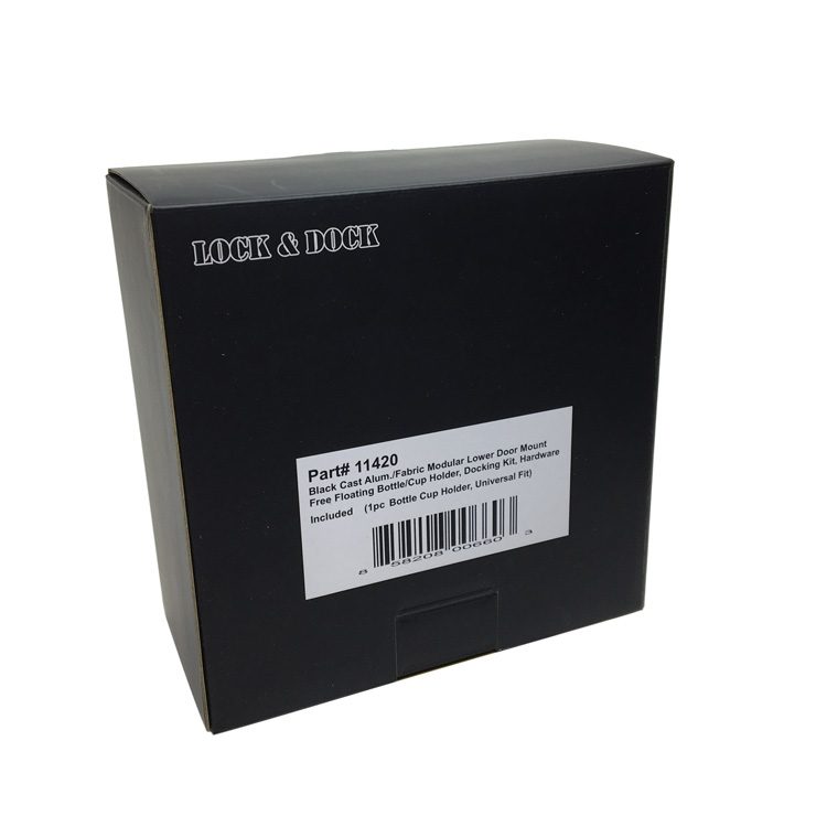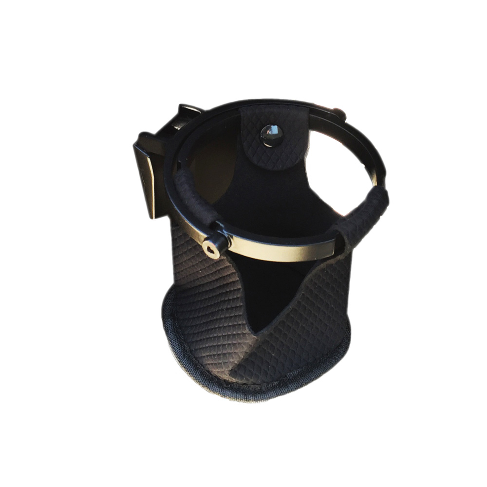 Black cast aluminum and fabric free floating bottle/cup holder that Fits cups/bottles up to 3 1/2″ in diameter