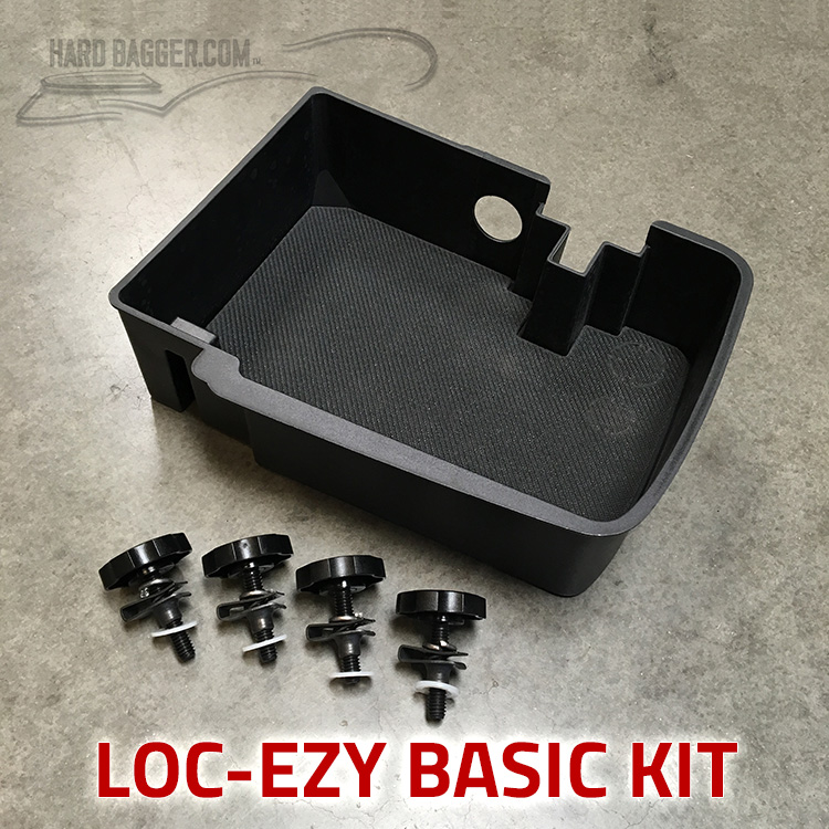 LocEzy is a simple Do It Yourself Kit to securely mount your Harley-Davidson Saddlebags to your bike frame by replacing the small factory 1/4 turn Dzus fasteners and thin wire U Clips with Injection Molded Knobs, steel threaded studs, and heavy duty mating threaded U clips.